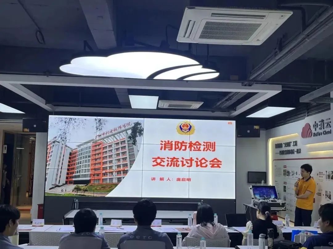 最后由我司培訓老師-龐老師為學生們開展消防檢測交流討論會,龐老師結合自己教學工作經驗,以扎實的理論功底和豐富的實踐經驗為依托還原實際情景,從火災自動報警系統,自動滅火系統,防排煙系統,防火巡查等方面進行講授,會上學生們踴躍和龐老師互動,發表自己見解,氣氛十分濃烈。